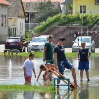 Dečje vodene igre na poplavljenom terenu