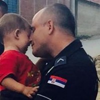 U SIGURNIM RUKAMA Fotografija srpskog policajca koji grli bebu iz Sirije raznežila Evropu 09.09.2015 0