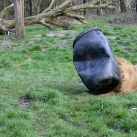 NEZGODA U ZOO VRTU Lav toliko navalio na hranu da se zaglavio u buretu