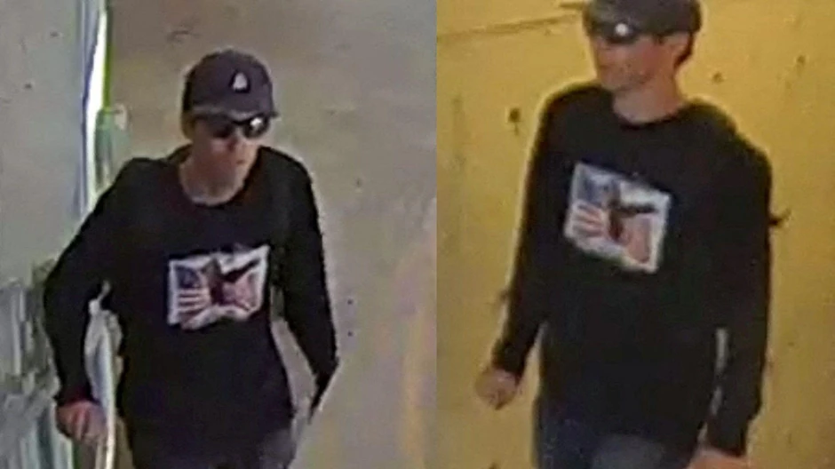 Prema fotografiji, mršavi muškarac imao je kačket i naočari za sunce, patike „Konvers“ i „prepoznatljivu“ crnu majicu dugih rukava sa američkom zastavom i orlom.