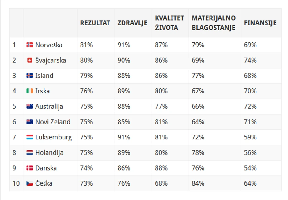 Sa ukupnim rezultatom od 81 odsto, Norveška se nalazi na prvom mestu kao zemlja koja najviše voli penzije na listi.
