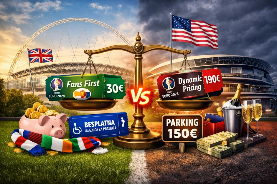 Razlike postaju još očiglednije kada se uporede konkretne brojke. Najjeftinija ulaznica za utakmicu u grupi na Euru 2028. koštaće 30 evra, dok je sledeća cenovna kategorija postavljena na 60 evra.