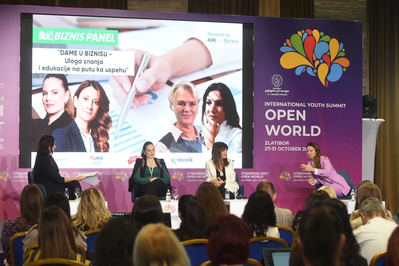 U okviru prvog Međunarodnog omladinskog samita mladih "Otvoreni svet" na Zlatiboru, danas su tri uspešne dame pričale o svojim iskustvima i izazovima na putu ka uspehu. Na "Blic Biznis" panelu na temu "Uspešne dame u biznisu - Uloga znanja i iskustva na putu do uspeha", pred oko više od 1.000 ljudi, otkrile su i najsitnije detalje koji su činili njihov profesionalni rast i razvoj u biznisima. "Blic Biznis" panel podržali su i AIK banka i Skijališta Srbije, domaće kompanije u kojima su dame na mnogim rukovodećim pozicijama.