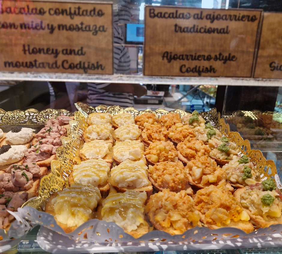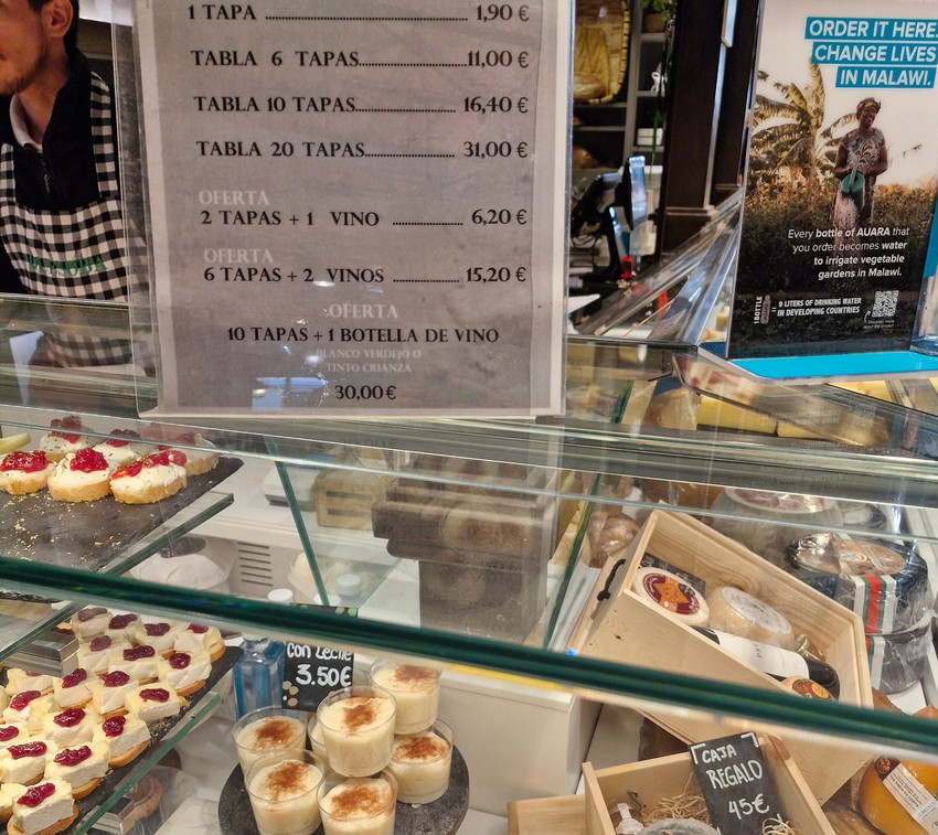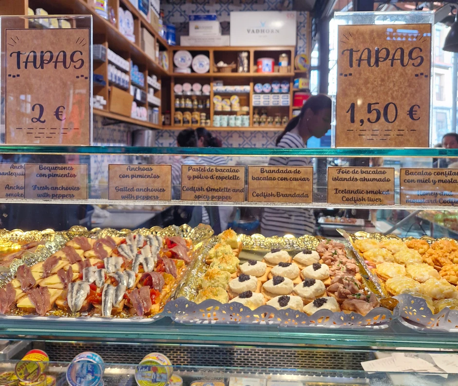 Na primer, takosi sa jastogom koštaju 14 evra, a tortilje sa lososm 9,50 evra. Sendvič sa iberijskom šunkom oko 5.50 evra. Inćuni prženi u dubokom ulju koštaju 16 evra, a 18 evra. Paelja košta 19.50 evra.