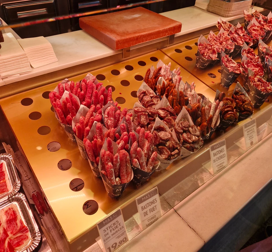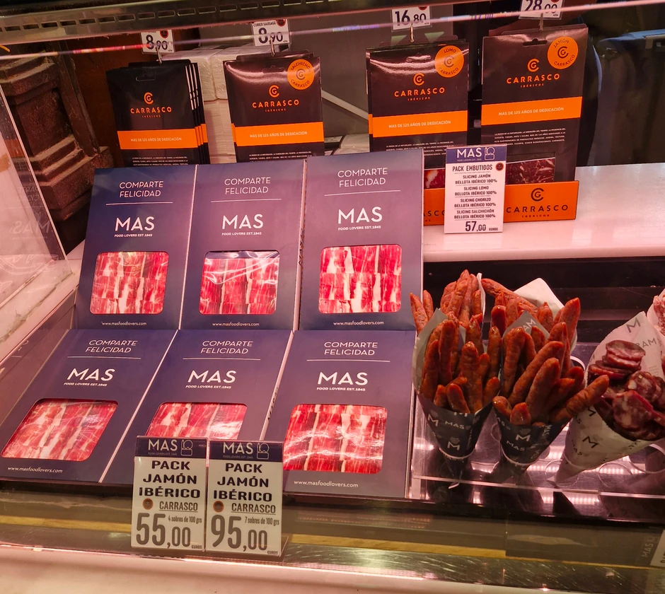 Kada je reč o suhomesnatim proizvodima, sušena kobasica u fišeku košta oko 19 evra. Veliko pakovanje iberijske šunke košta 55 evra. Sto grama ovog specijaliteta od crne iberijske vrste svinja košta u proseku od 20 do 25 evra.