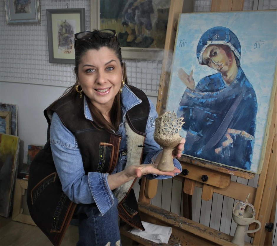 Ubrzo nakon toga, kao logični sled, rešila je da završi kurs keramike i grnčarstva u studiju “Bardak” na Dorćolu. Umetnost uvezuje, tako da su vajar i slikar povezani, dugo godina unazad naša sagovornica je htela da se bavi vajarstvom i da savlada točak. Ali tada nije bilo prilike da se tome posveti, nije bilo vreme. Prošle godine se sve poklopilo, kako to obično i biva u životu koji ima svoj red i vreme, tako je došlo i Vladislavino. Počinje da izrađuje kutijice za tamjan, kućne kadionice, sa motivima manastirske rozete za manastir Draganac.