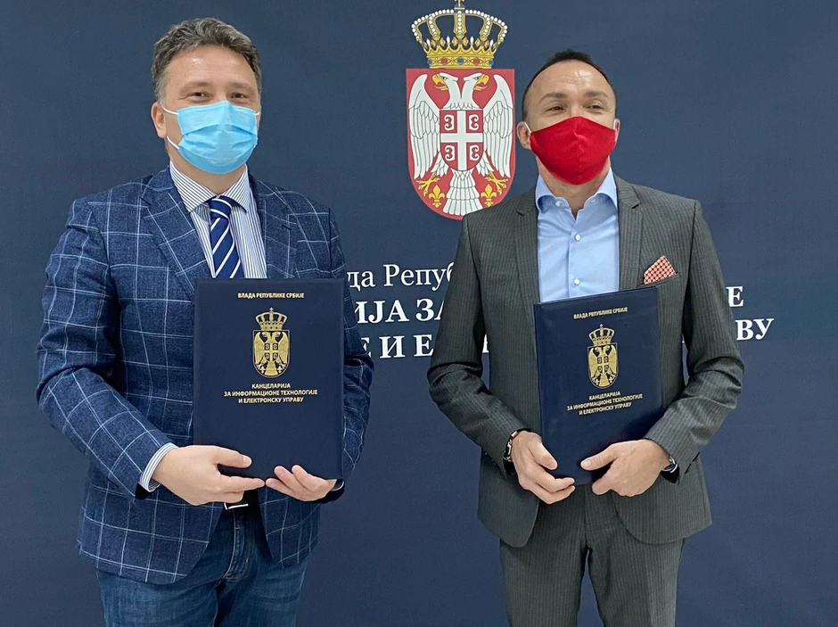 Direktor Kancelarije za IT i eUpravu, dr Mihailo Jovanović i predsednik kompanije AIGO, Dragan Popović potpisali su Ugovor o smeštanju opreme, kojim ova IT kompanija postaje treći komercijalni korisnik Državnog data centra u Kragujevcu.