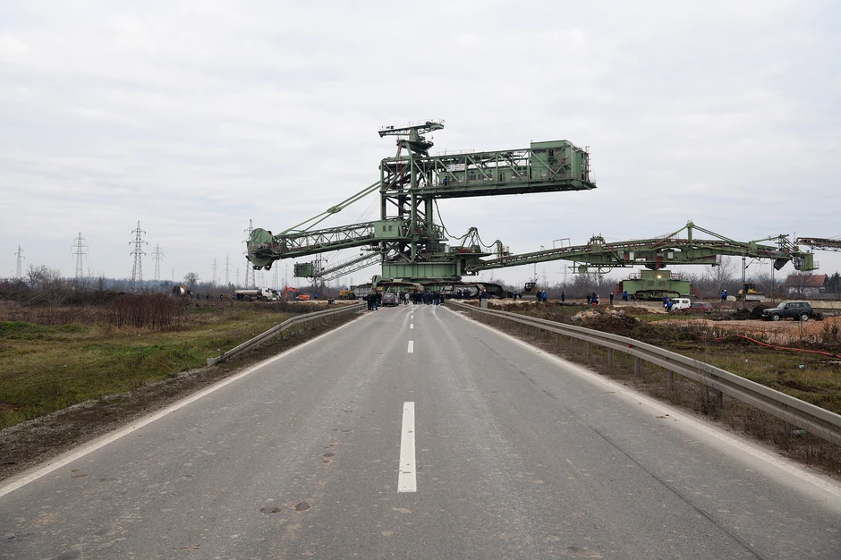 Kolosi RB „Kolubara“, tri rudarske mašine visoke i do 32 metra i teške do 1.500 tona, započeli su prelazak preko Ibarske magistrale, tri pružna prelaza i lokalnog puta na oko 13 kilometara dugoj trasi do kopa Polje „G“.