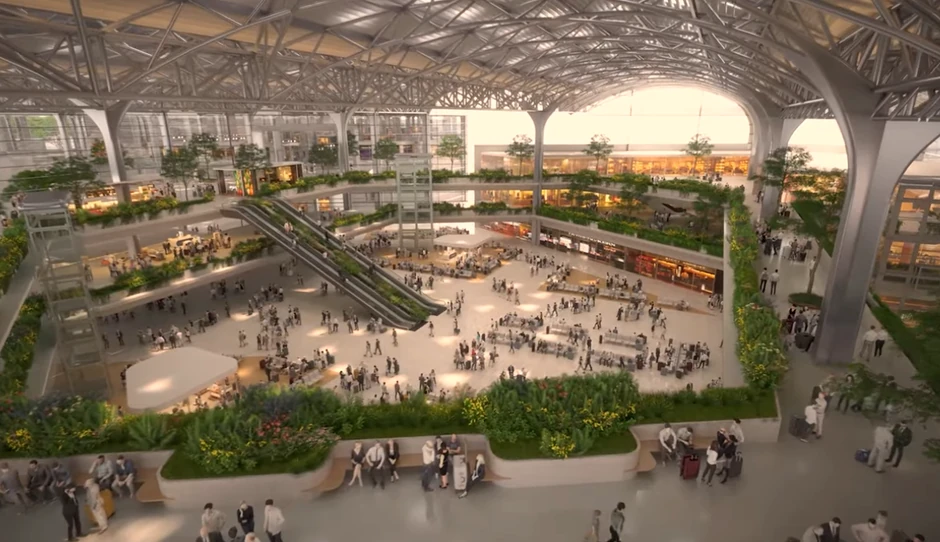 Vizuelizacija budućeg Centralnog komunikacionog centra (Centralny Port Komunikacyjny – CPK) u Poljskoj prikazuje novo evropsko saobraćajno čvorište koje će objediniti međunarodni aerodrom, brze železnice i podzemni tunel.