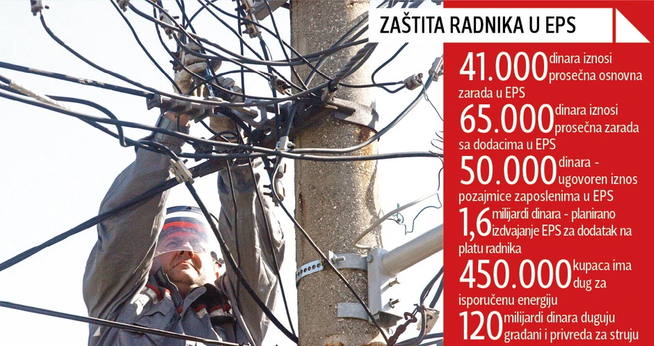 Ukupna dugovanja građana i privrede za struju iznose 110 do 120 miliona dinara i višestruko premašuju iznos kredita koje traži poslovodstvo. U isto vreme, prosečna osnovna plata u EPS-u iznosi oko 41.000 dinara, a sa dodacima za noćni, smenski i rad praznicima izađe na 65.000 dinara, što je znatno više od republičkog proseka.