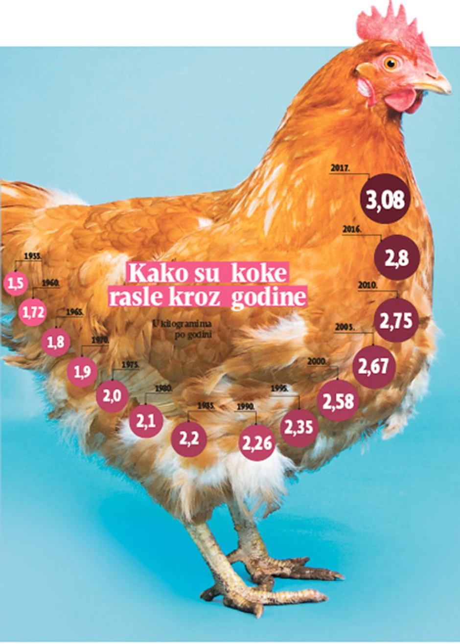 KAKVU PILETINU JEDEMO? Koke su DUPLO VEĆE nego pre pola veka, a evo šta to znači