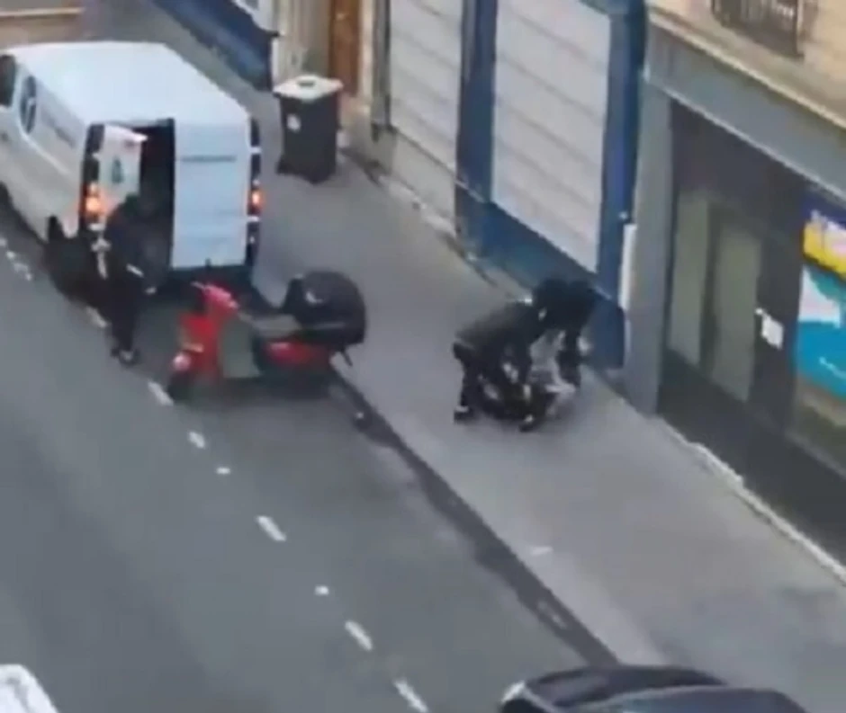 Ceo napad, koji se odigrao u 11. pariskom okrugu, zabeležen je na video-snimku. Trojica muškaraca su iskočila iz belog kombija i pokušala da zgrabe ženu i njenu bebu.