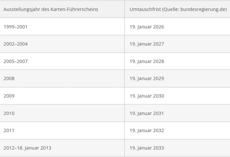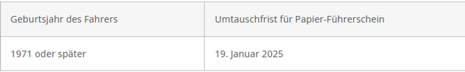U Nemačkoj se papirne vozačke dozvole menjaju prema godini rođenja. Različite starosne grupe imaju različite rokove razmene.
