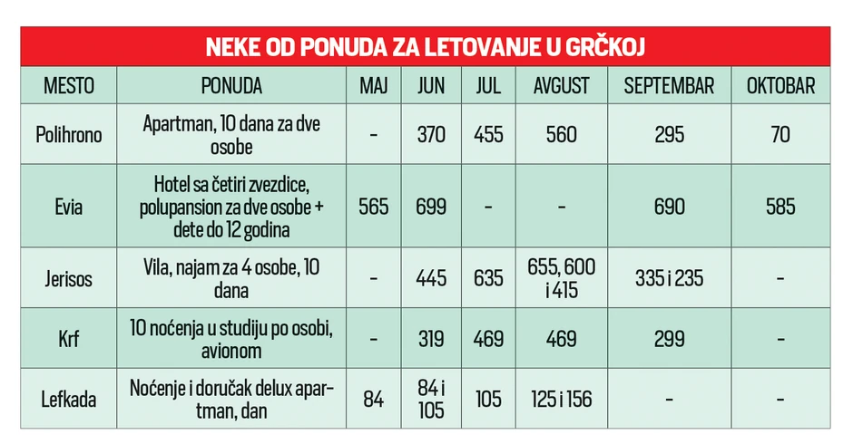 Čari prave zime još skoro da nismo osetili, ali mnogi građani već razmišljaju o letovanju, o čemu govori i prodaja aranžmana za Grčku, naročito u vansezonskim terminima, što je u ovom trenutku i najpovoljnija ponuda, za oko 50 do 70 evra.