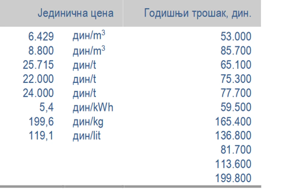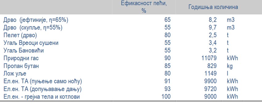 Navedeni iznosi obuhvataju samo troškove nabavke energije, odnosno goriva, a ne obuhvataju investicione troškove (npr. nabavku peći i ugradnju instalacija centralnog grejanja) i troškove periodičnih pregleda i održavanja..