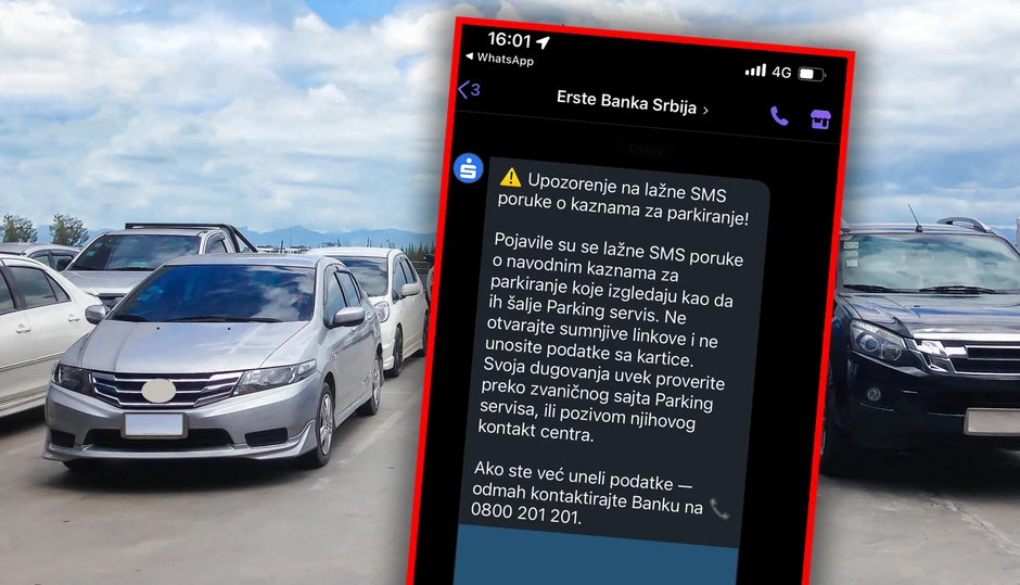 - Pojavile su se lažne SMS poruke o navodnim kaznama za parkiranje koje izgledaju kao da ih šalje Parking servis. Ne otvarajte sumnjive linkove i ne unosite podatke sa kartice. Svoja dugovanja uvek proverite preko zvaničnog sajta Parking servisa, ili pozivom njihovog kontakt centra. Ako ste već uneli podatke - odmah kontaktirate Banku na 0800 201 201 - stoji u upozoirenju gorepomenute banke.
