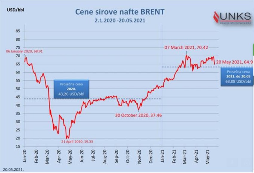- Ne očekujem da će povećanje cena derivata nafte biti osetnije. Narednih godinu dana, očekujem blagi rast cena i potrošnje, ali ne očekujem da prosečna cena pređe nivo iz 2019. godine, od oko 65 dolara po barelu. U međuvremenu, pošto je tržište još uvek osetljivo, dešavaće se blagi poremećaji i oscilacije cene. Od sredine marta do sredine aprila ove godine, cena sirove nafte tipa Brent je rasla sa 61 dolar, na 70 krajem meseca, da bi opet pala nedelju dana kasnije na 61 dolar, a sredinom aprila skočila na 65 dolara po barelu - navodi Radosavljević.