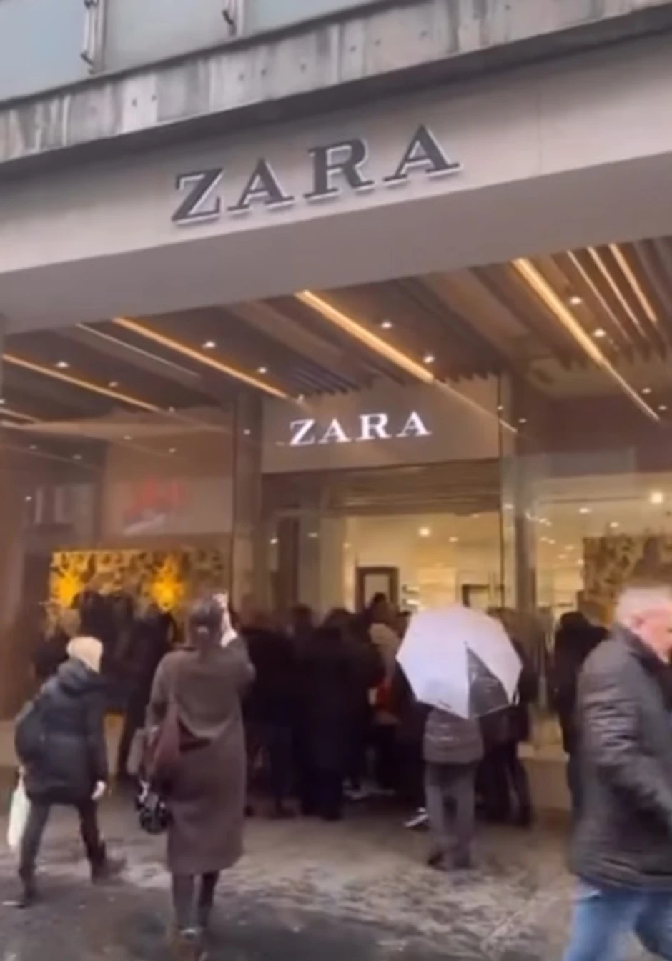Iako je vreme kišovito i hladno, to nije sprečilo veliki broj potrošača da strpljivo čekaju u redu.