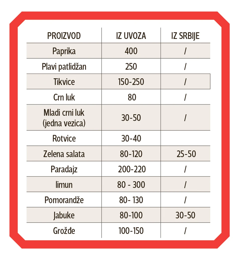 Kako trgovci na beogradskim pijacama tvrde, povrće kao što su plavi patlidžan, tikvice i paprika se uvozi, i to najčešće iz Turske, Albanije, Italije, Makedonije, pa čak i Španije.