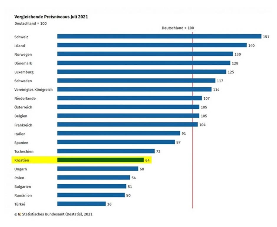 Kada je reč o Hrvatskoj, u njoj je život 36 odsto jeftiniji nego u Nemačkoj, piše Index hr.