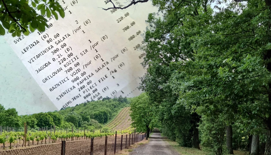 Sagovornica nam je ustupila račun na kojem se vidi da su 4 osobe ručale i popile vino za tu cifru. Primera radi, teleća čorba košta 300 dinara, kupus salata 180 dinara, specijalitet restorana je 800, dog su ražnjići 900 dinara (porcija).