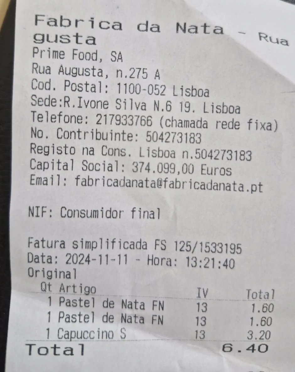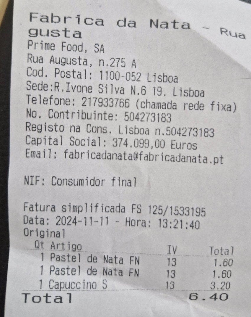 Cena po komadu varira, pa se može naći za 1.40 do 1.80 evra, a mi smo platili 1.60 evra u jednom od najpoznatijih lokala "Fabrica de Nata" na šetalištu koji vodi ka Trijumfalnoj kapiji i trgu Komersio.