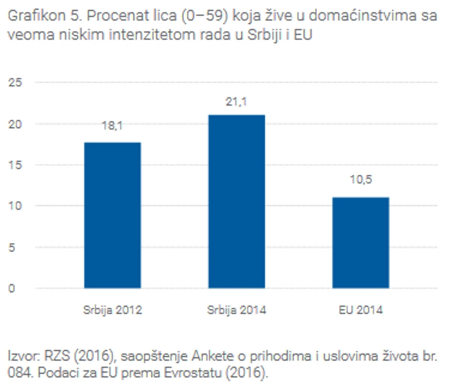 Prvi na listi uzroka za veliku nejednakost u dohotku u Srbiji su domaćinstva sa niskim intenzitetom rada, odnosno nezaposlena lica ili lica koja rade manji broj sati u nedelji.