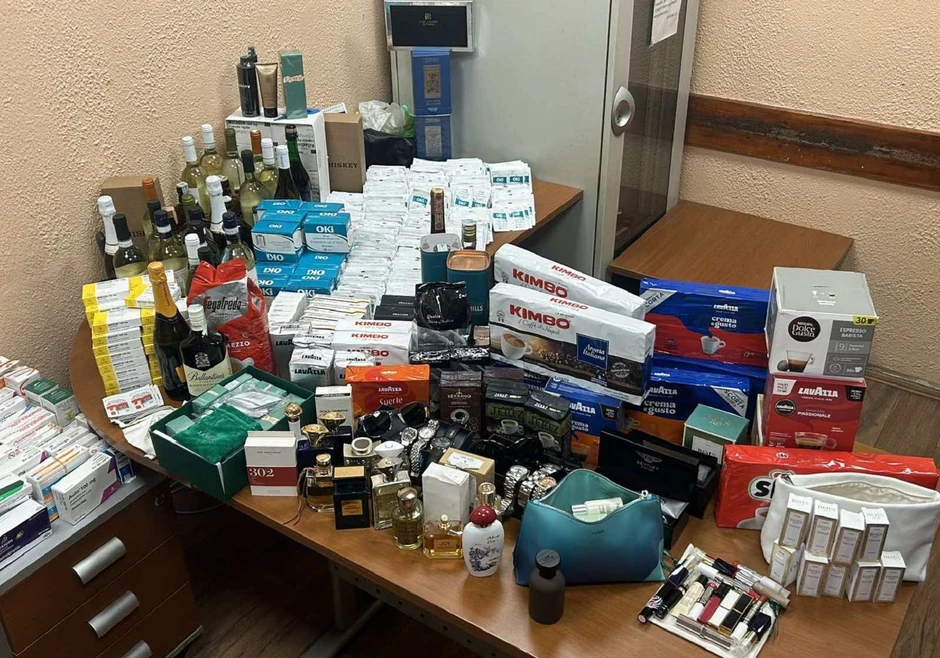Pregled je pokazao da je tovarni deo kombija pun torbi, kesa i kutija, u kojima se našla najrazličitija akcizna i brendirana roba: gotovo 20 kilograma kafe, 2.200 kesica i 166 kutija različitih lekova, 30 parfema, 30 flaša raznih alkoholnih pića, pet flaša maslinovog ulja, kao i više komada satova, dekorativnog posuđa i kozmetike.