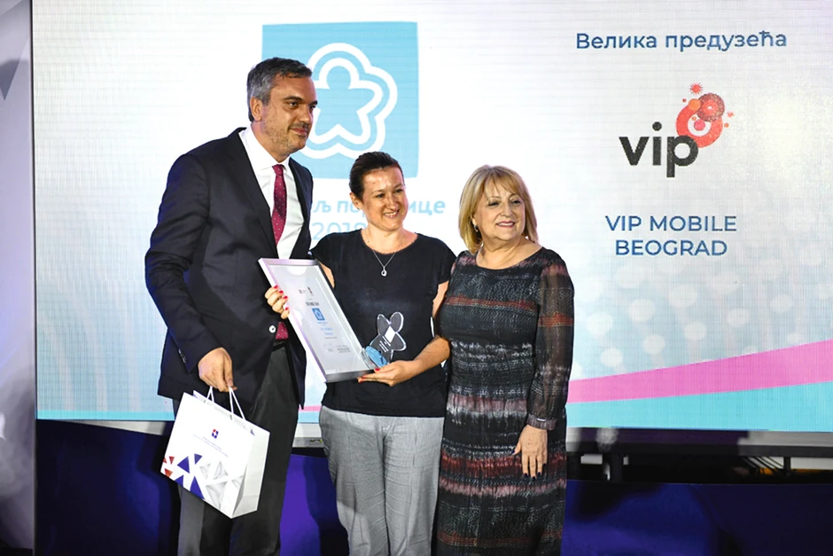 Među laureatima je i „Vip mobile“, prepoznat kao kompanija koja ulaže i stvara prijateljsko i porodično okruženje u kome zaposleni mogu da se ostvare podjednako dobro i kao profesionalci u svom poslu i kao roditelji kod kuće.