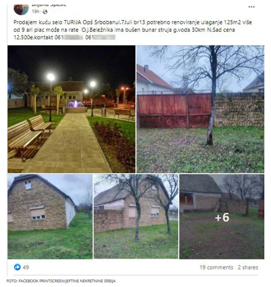 U prvom oglasu Biljana je ponudila na prodaju domaćinstva u Turiji kod Srbobrana za koje traži malo više od 10.000 evra, tačnije 12.500 evra, ali naglašava da plaćanje može da se obavi i na rate.