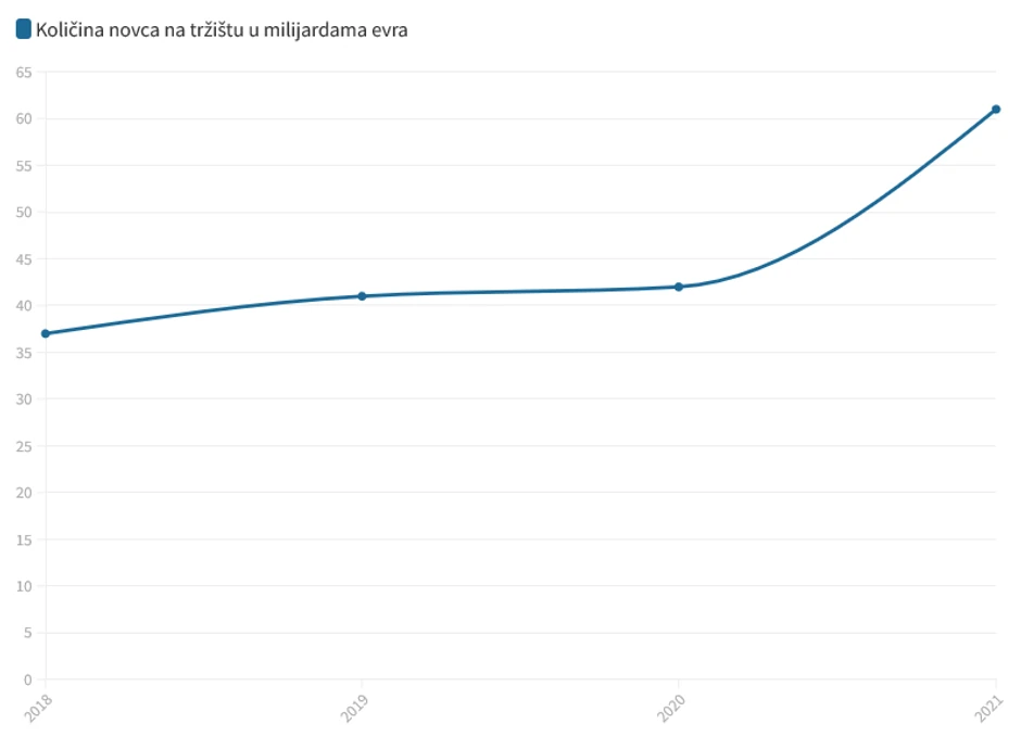 Količina novca na tržištu u 2021. godini je dostigla iznos od 6,1 milijardu evra, što je povećanje u odnosu na godinu pre za 47 odsto. U slučaju stanova potrošeno je 43 odsto više novca (3.293.036.000 evra).