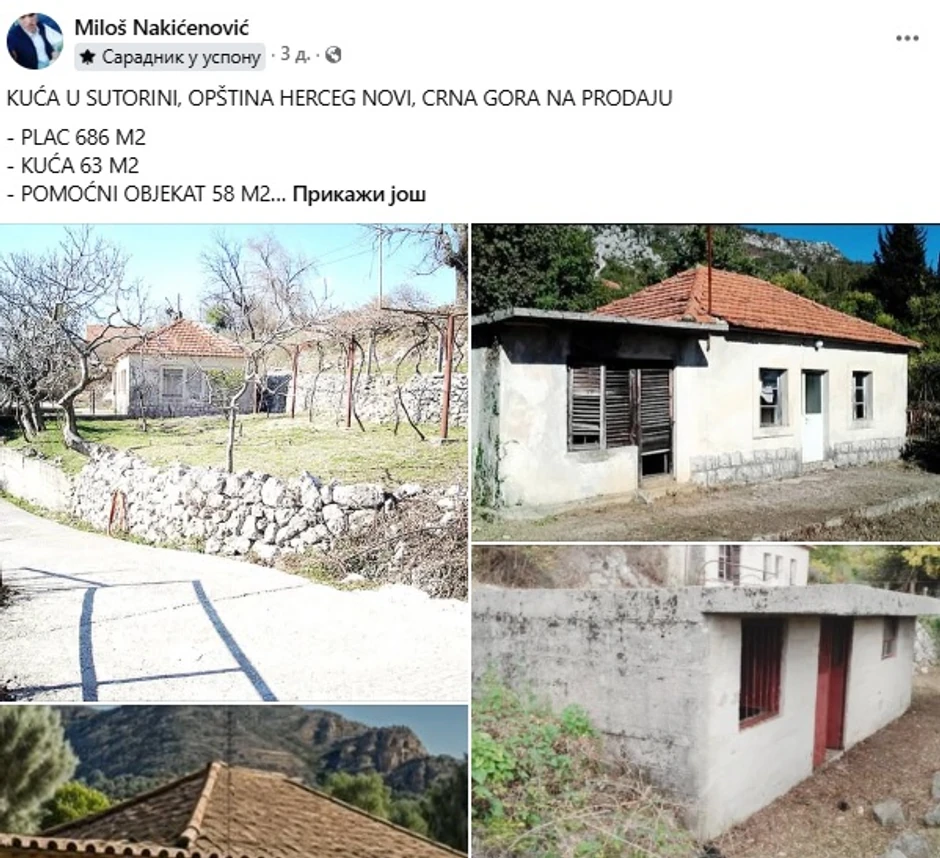 U Sutorini, opština Herceg Novi, prodaje se nekretnina idealna za one koji traže mir, privatnost i prirodni ambijent, a istovremeno žele blizinu neophodne infrastrukture i granice sa Hrvatskom.