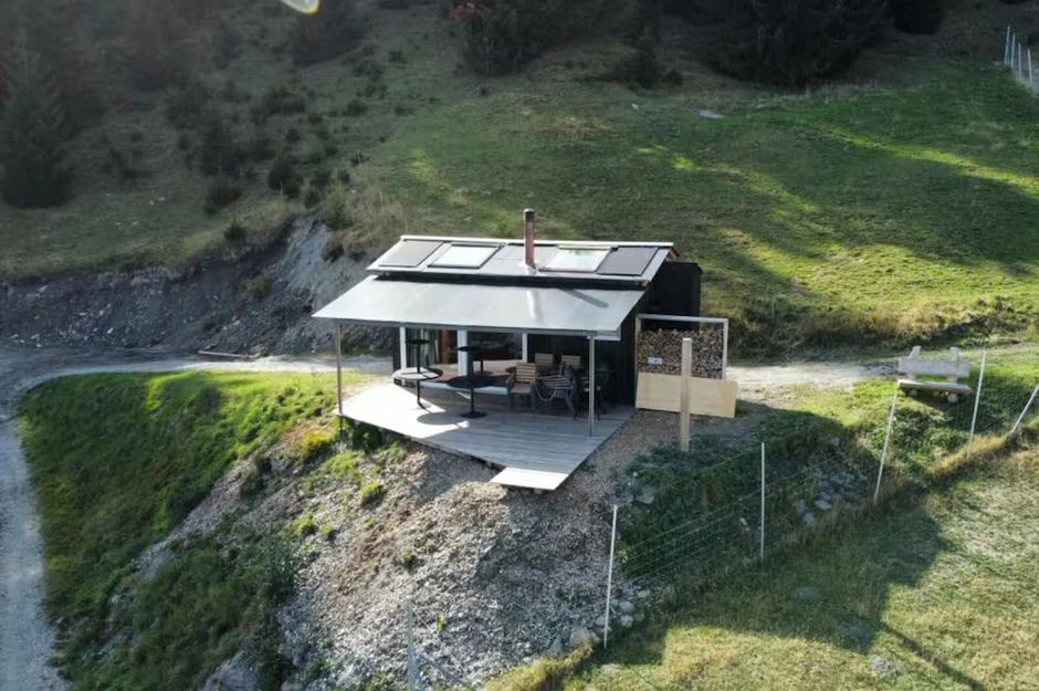 Mini planinsku kuću izgradio je Simon Kunferman, 45-godišnji poljoprivrednik iz Praza. Po struci je stolar i koristio je drvo sa jednog starog alpskog skloništa. Kućica je postavljena na metalnu konstrukciju nekadašnjeg pomorskog kontejnera tako da se može odneti bilo gde iz Švajcarske.