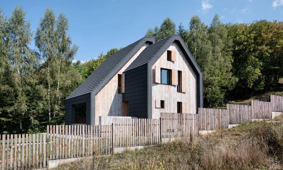 Svi drveni elementi na fasadi su izvorne boje, bez zaštitnih premaza, kako bi se s vremenom fasada, pod uticajem padavina i sunca, što bolje stopila sa okruženjem, piše Superprostor.