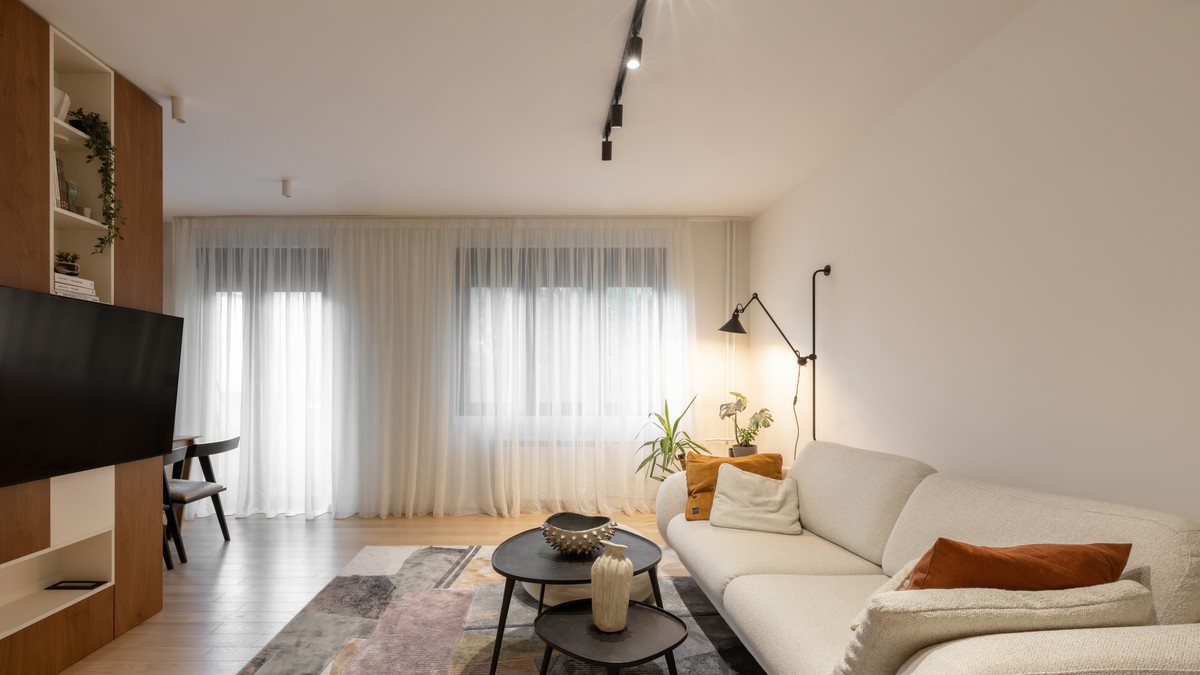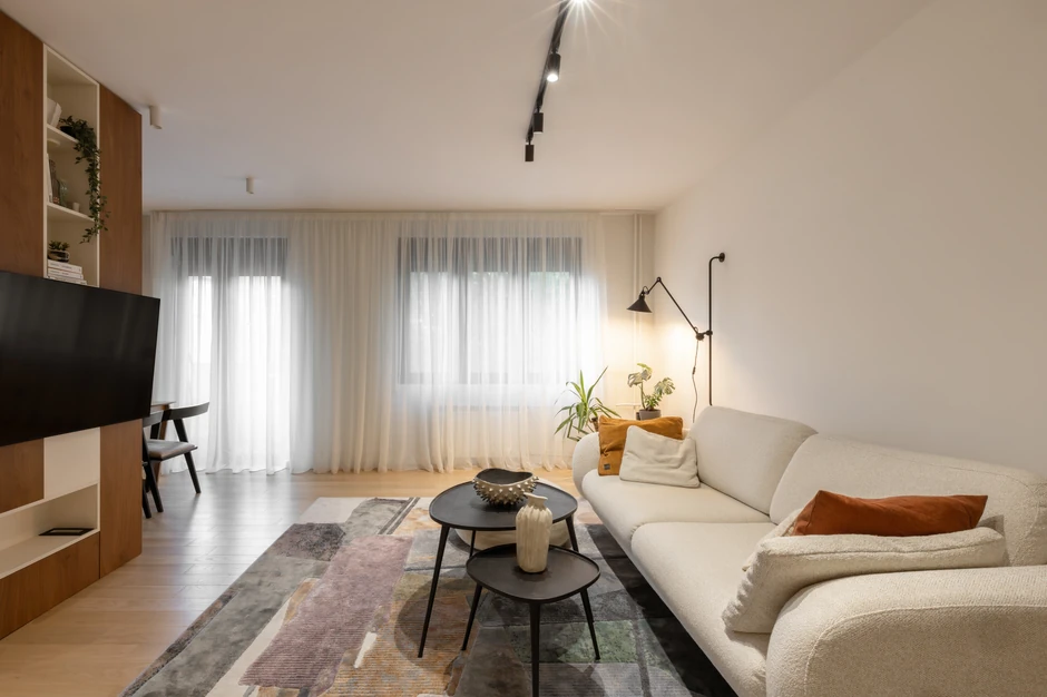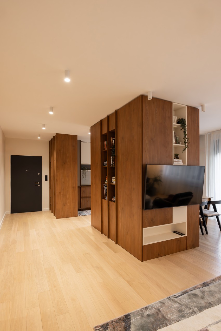 Fleksibilnost prostora bila je jedna od glavnih ideja vodilja prilikom izrade projekta uređenja ovog enterijera. Projektovan kao dvosoban, sa minimalnim promenama može se transformisati u trosoban porodični stan.