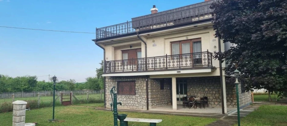Kuća raspolaže sa osam soba, dva kupatila, kuhinjom i priključkom za gas.