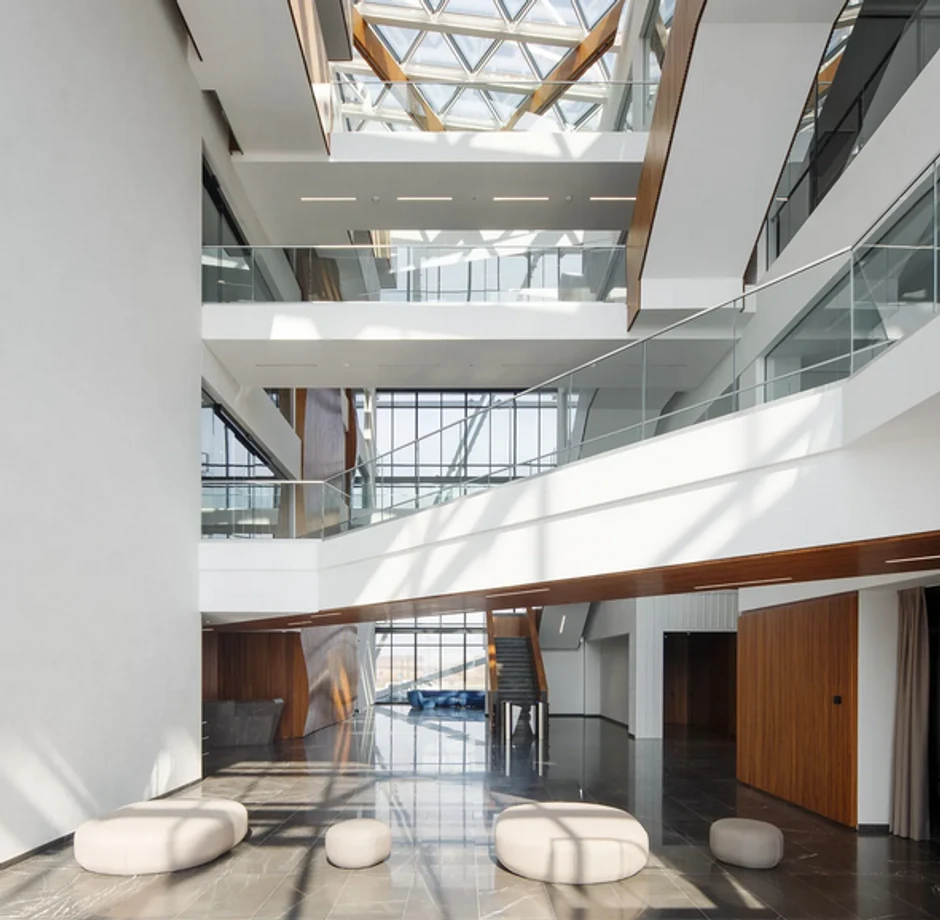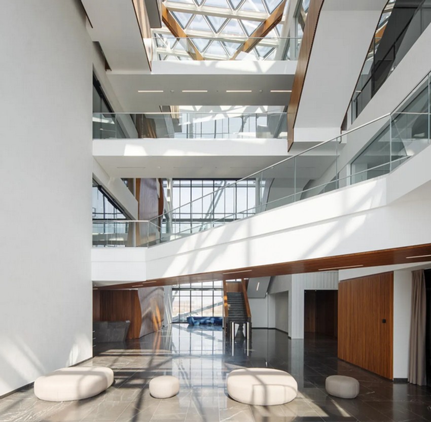 Objekat se sastoji iz dva dela povezanih mostovima kroz atrijum, koji daje novu dimenziju razmene, saradnje i susreta u pokretu, uz transparentnost svih segmenata zajedničkog rada i života. Fluidno postavljene komunikacije stvaraju uvek novu atmosferu, koja unosi svežinu u tipičan poslovni dan.