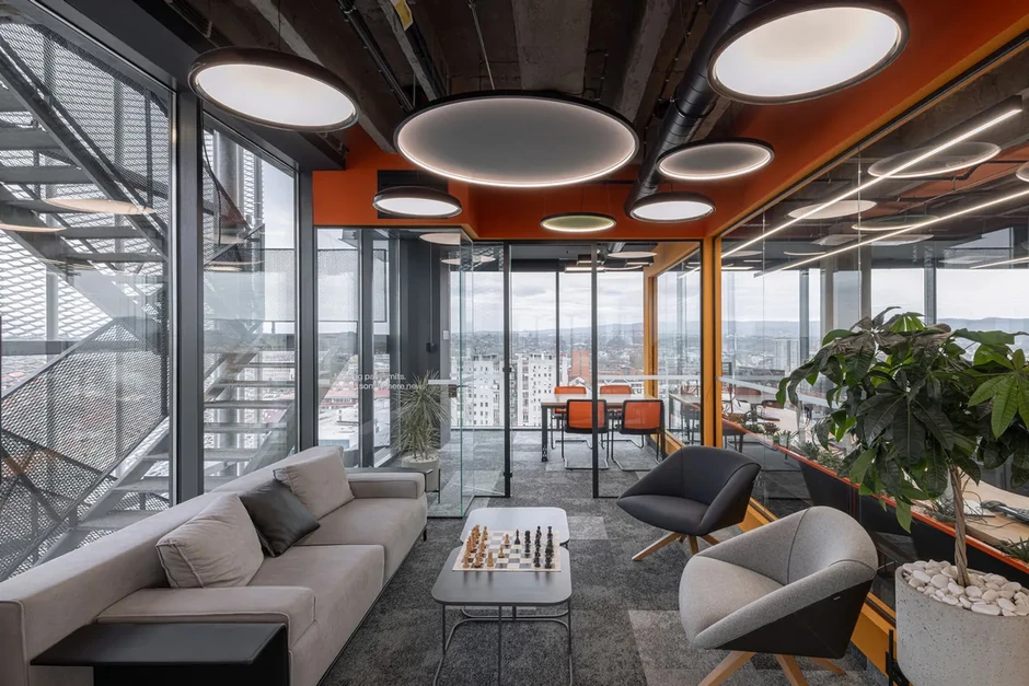 Prilikom pojektovanja unutrašnjeg prostora za potrebe IT kompanije trebalo je, pre svega, postići harmoniju između funkcionalnosti i estetike, te istovremeno formirati radni prostor koji odgovara duhu firme, prija zaposlenima i ostavlja dobar utisak na potencijalne klijente, prema arhitektonskom studiju Synthesis Quatro | Arhitektura i dizajn enterijera, Novi Sad.