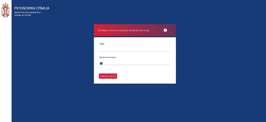 Potrebno je da ubacite svoje podatke JMBG i broj lične karte i dobićete obaveštenje da li vas novac očekuje ili ne.