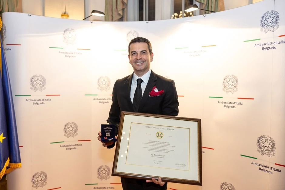 - Izuzetna mi je čast poneti ovo veliko priznanje koje vidim ne samo kao potvrdu lične posvećenosti, već i kao odraz zajedničkog rada svih institucija u kojima učestvuje Banca Intesa na osnaživanju saradnje između naše dve zemlje. Kao deo bankarske grupacije Intesa Sanpaolo i vodeća banka u Srbiji, Banca Intesa već dve decenije gradi mostove koji nadilaze bankarstvo, doprinoseći jačanju ekonomskih, poslovnih i kulturnih veza i promovišući snaẓ̌no partnerstvo Srbije i Italije –izjavio je Darko Popović.