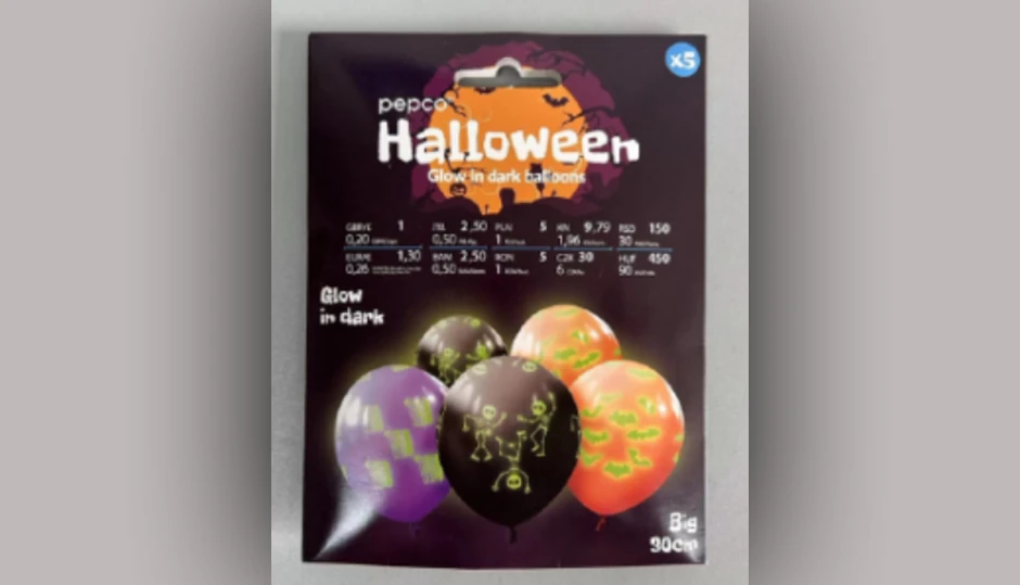 Konkretno, reč je o balonima koji svetle u mraku robne marke Pepco, pakovanje 5 komada, 12″ Halloween, artikal broj SKU 594281 EAN kod: 2200159428160.
