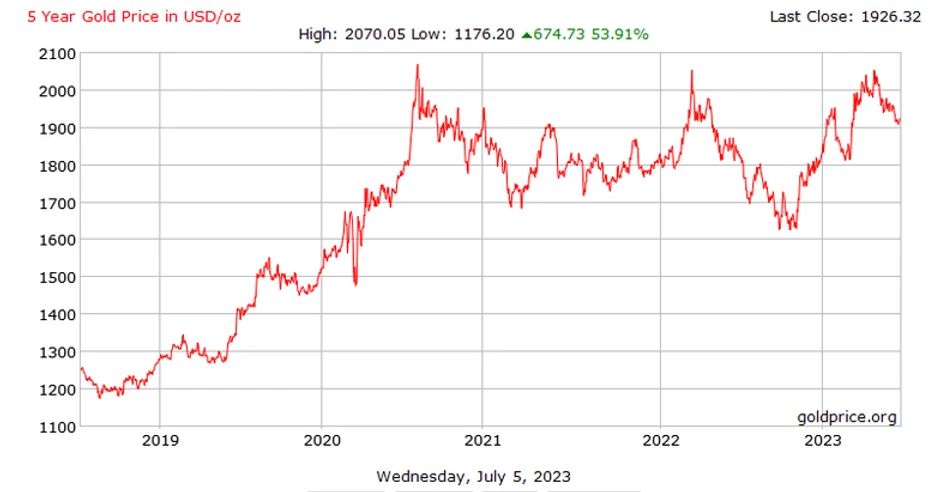 Najveća cena zlata u poslednjih nekoliko godina je zabeležena 2021. godine, kada je cena za finu uncu dostigla skoro 2.100 dolara, a taj trend se nastavio uz manje oscilacije sve do danas. Tome je doprinela pandemija koronavirusa, kao i nestabilna geopolitička situacija jer je pre svega toga tokom 2018/2019. godine zlato na svetskim berzama koštalo oko 1.300 dolara.