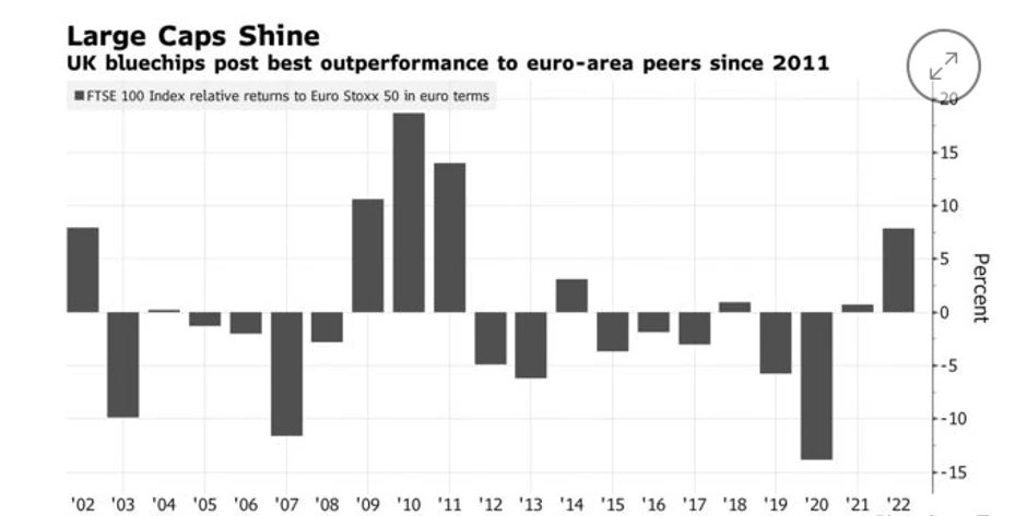 Ipak, dinamika akcija u Velikoj Britaniji bi mogla da se promeni sledeće godine, prema Susani Kruz, strategu u Liberum Capital Ltd. Ona očekuje da će britanska srednja kapitalna vrednost nadmašiti velike kapitalne vrednosti kako inflacija popušta, a dolar slabi.