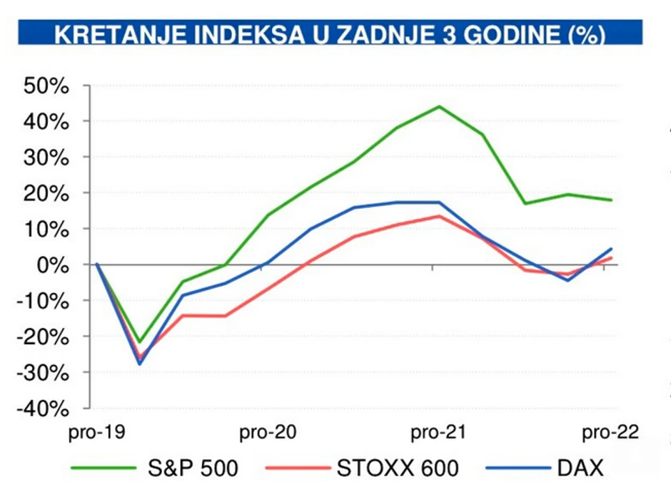 U Evropi uz energetsku krizu i rat u Ukrajini, neizvesnost traje i dalje. Ne zna se još ni pouzdano da li je inflacija dotakla plafon. ECB i dalje drži kamatnu stopu nisko, na polovini američkih vrednosti i to daje pozitivniji predznak deonicama na evropskim berzama.