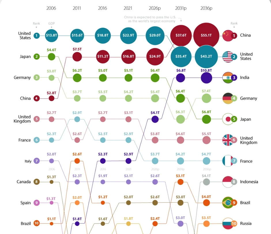 Kao što smo ranije rekli: Kina će postati najveća svetska ekonomija u smislu BDP-a, a Indija će biti treća svetska ekonomija. Hajde da pogledamo i 10 najboljih ekonomija do 2031.