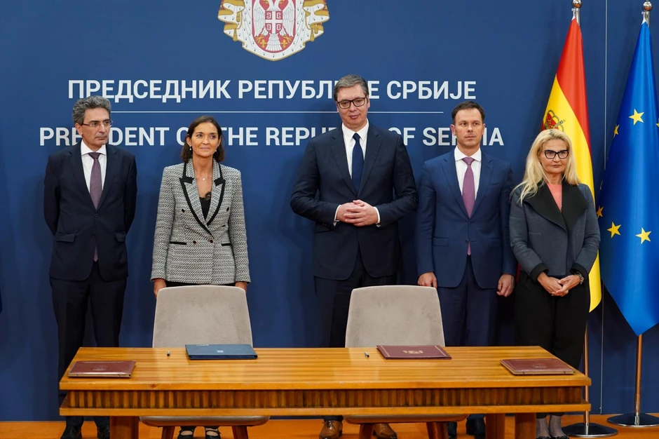 - Ekonomska saradnja Srbije i Španije je na konstantnoj uzlaznoj putanji, trgovina nam beleži rekordne vrednosti, a plasman srpske robe na špansko tržište je udvostručen", napisao je Vučić na Instagram profilu "budućnostsrbijeav".
