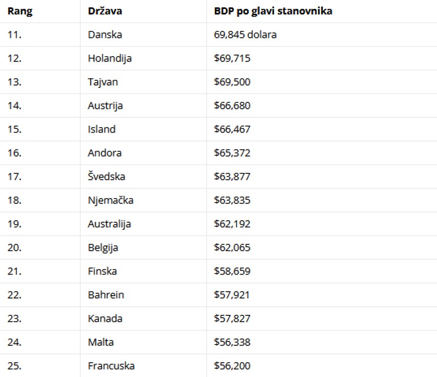 Sledi pregled 25 najbogatijih zemalja na svetu: