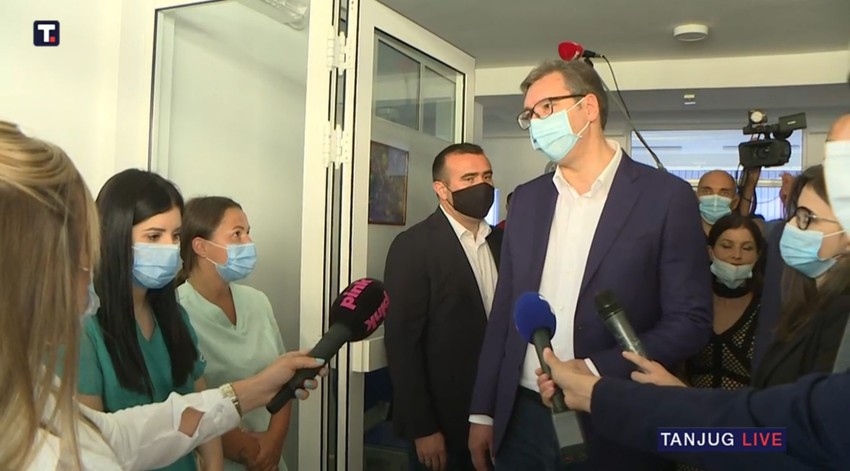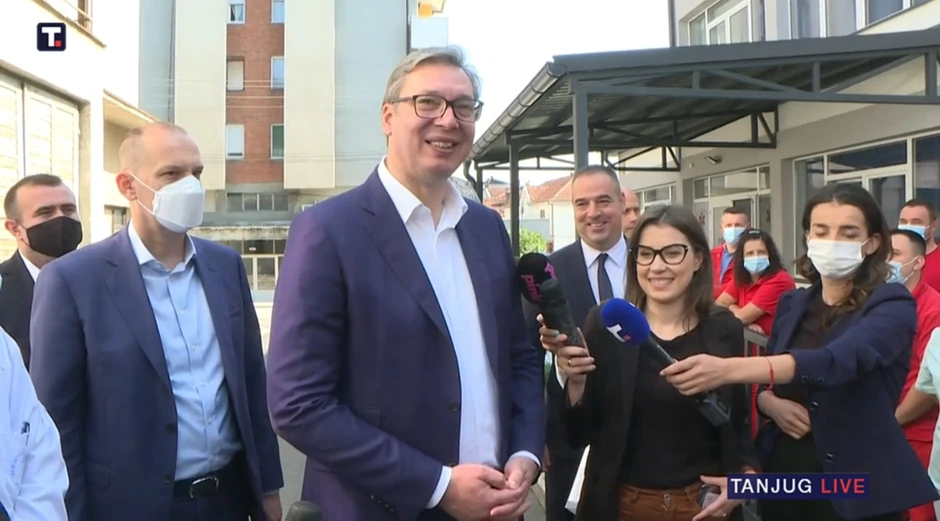 Vučić je u Domu zdravlja na kratko porazgovarao i sa nekoliko žitelja Despotovca, koji su došli na vakcinaciju.