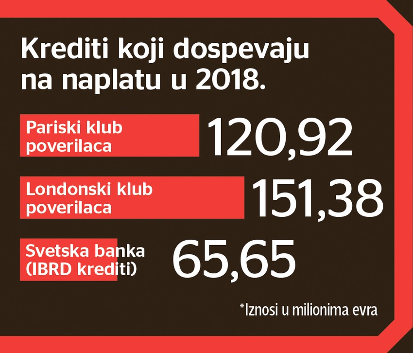 - Reč je o kreditima koje su Titovi premijeri dobijali od Pariskog i Londonskog kluba, te Svetske banke i njenog ogranka Međunarodne banke za obnovu i razvoj. Bili su to izuzetno skupi zajmovi, kamata je bila fiksna i iznosila je blizu sedam odsto godišnje, a država je uzela ukupno 8,8 milijardi evra. Od Pariskog kluba smo dobili 3,8 milijardi dolara, od Londonskog 2,2 milijarde... Prethodnih godina u proseku smo vraćali po oko 250 miliona evra, a ove godine na naplatu dolazi skoro 340 miliona. Najviše treba da vratimo Londonskom klubu - 151 milion evra, zatim Pariskom klubu - 121 milion evra i Svetskoj banci 65 miliona - kaže izvor "Blica".