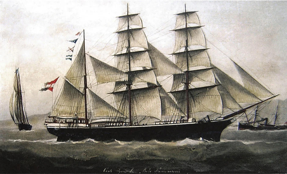 Bark „Conte Oskar L.“ Od 953 tone, sagrađen u Spoturnu u Italiji 1871. godine, prodat 1893. Alfredu Martinoliću iz Malog Lošinja.